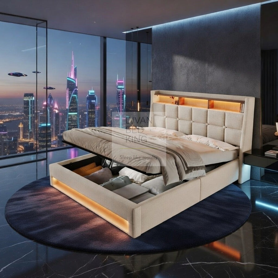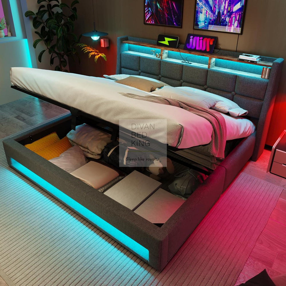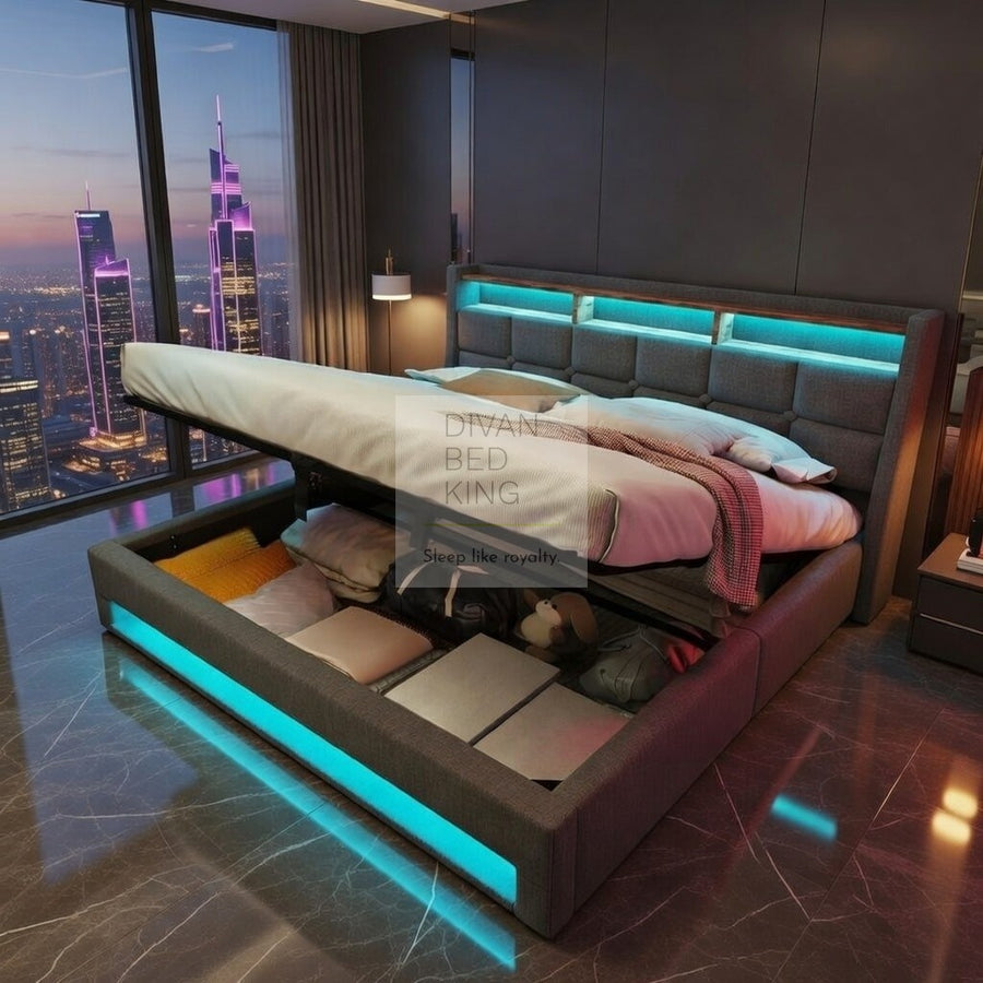 LED beds are innovative bed frames featuring integrated LED lights, strategically placed in the headboard or frame. They are ideal for setting various moods, whether you desire a soothing nightlight or a tranquil ambiance. These beds not only enhance the aesthetic appeal of your bedroom with a modern touch but also cater to gadget enthusiasts and contemporary design lovers. With a diverse selection of colours, materials, and sizes available at budget-friendly prices, you can find the perfect LED bed to suit your style. Different models offer unique placements for the LED lights, ensuring that no matter your choice, you’ll relish the inviting atmosphere created by the lighting in your space.