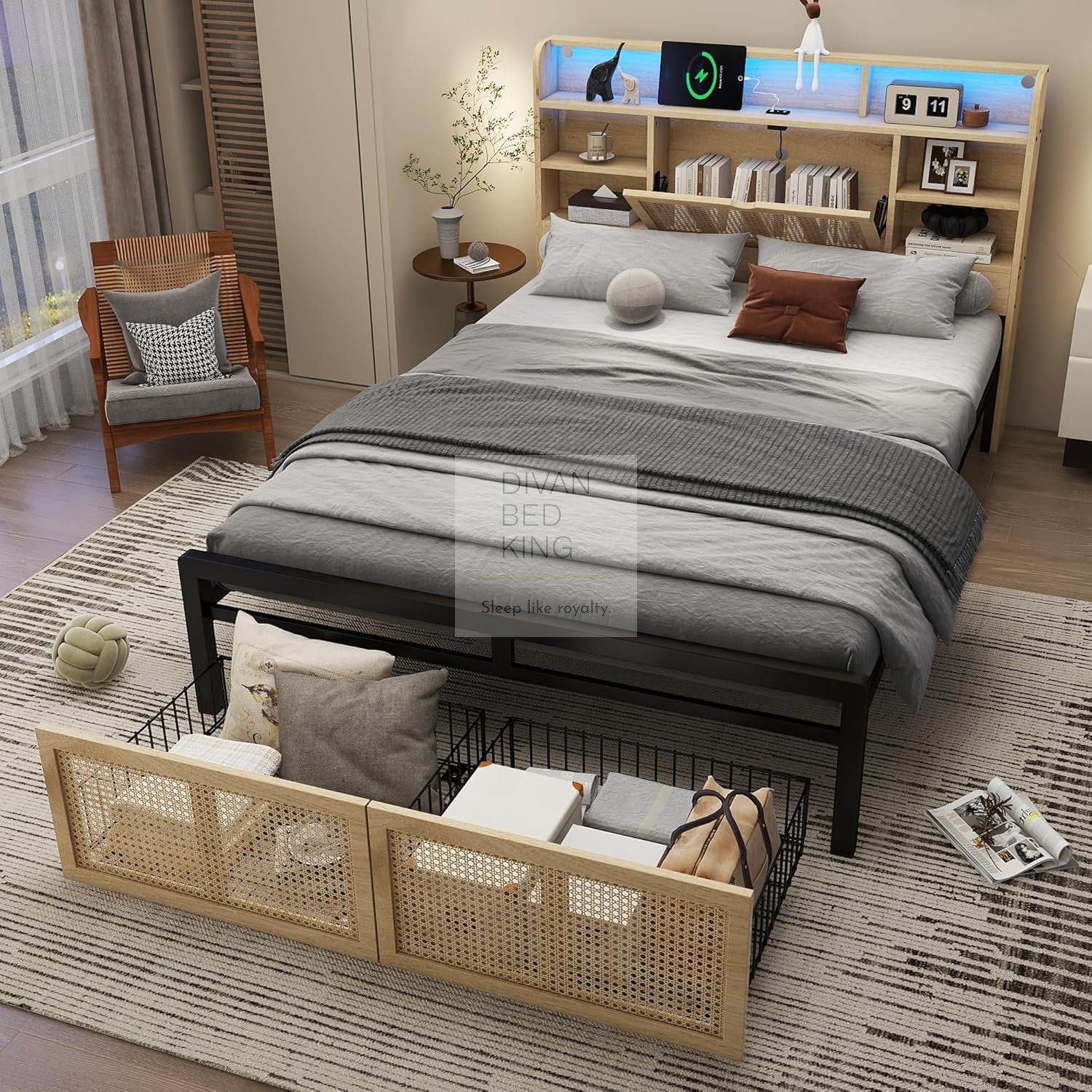 - Made From Strong Solid Pine Wood, Iron, PE Rattan & MDF